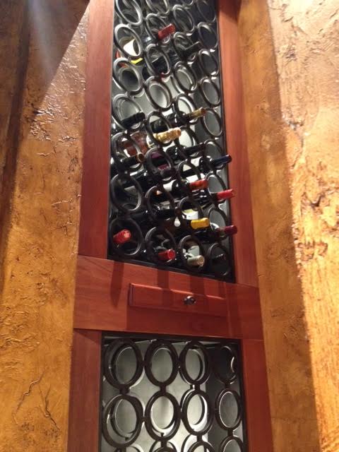 It is always great to make use of interior space in your house that otherwise would get neglected. Staircases can provide such places that are perfect for closets, extra storage or even a wine cellar. As an interior designer and interior decorator it is fun and exciting to let your creative juices flow and to come up with new ideas, on how to furnish small spaces and get the most function out of it. I just did some custom drapery work at this home, which was a Knoxville Symphony Show House a few years ago,and the home owners still enjoy this unique space. In this case the walls were faux finished with a plaster texture to make it more reminiscent of a true cellar and something you might find in Tuscany or Napa Valley. Every nook and small space was perfectly used for wine storage and an air vent was installed as well to maintain proper temperatures. All the wrought iron pieces were custom made to fit and to give it a built-in, finished look. Small interior spaces like this one are best to be designed when either remodeling or during new construction, simply because it is easier to plan for all the electrical and air supply, as well as customizing the space for built-in units or shelving.